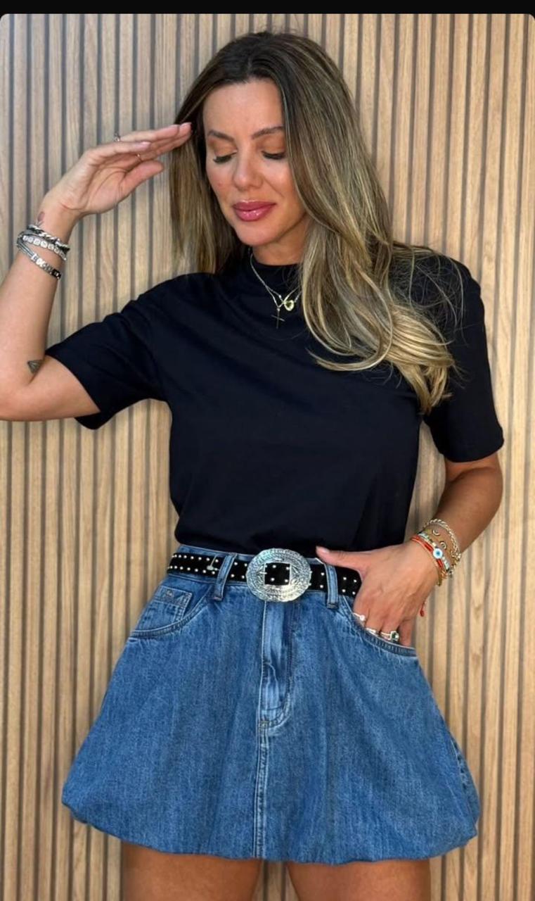 Mini saia confeccionada em jeans de lavagem clássica, com modelagem balonê que garante volume sutil e um caimento moderno e feminino. O design apresenta cintura média, cós com passantes e bolsos frontais funcionais, unindo estilo e praticidade. A estrutura do jeans oferece sustentação à modelagem arredondada, criando um visual descolado e atual. Versátil e cheia de personalidade, é a peça perfeita para compor looks casuais com charme, combinando facilmente com camisetas básicas, tops ou camisas mais elaboradas. Ideal para quem busca uma produção jovem, estilosa e confortável.