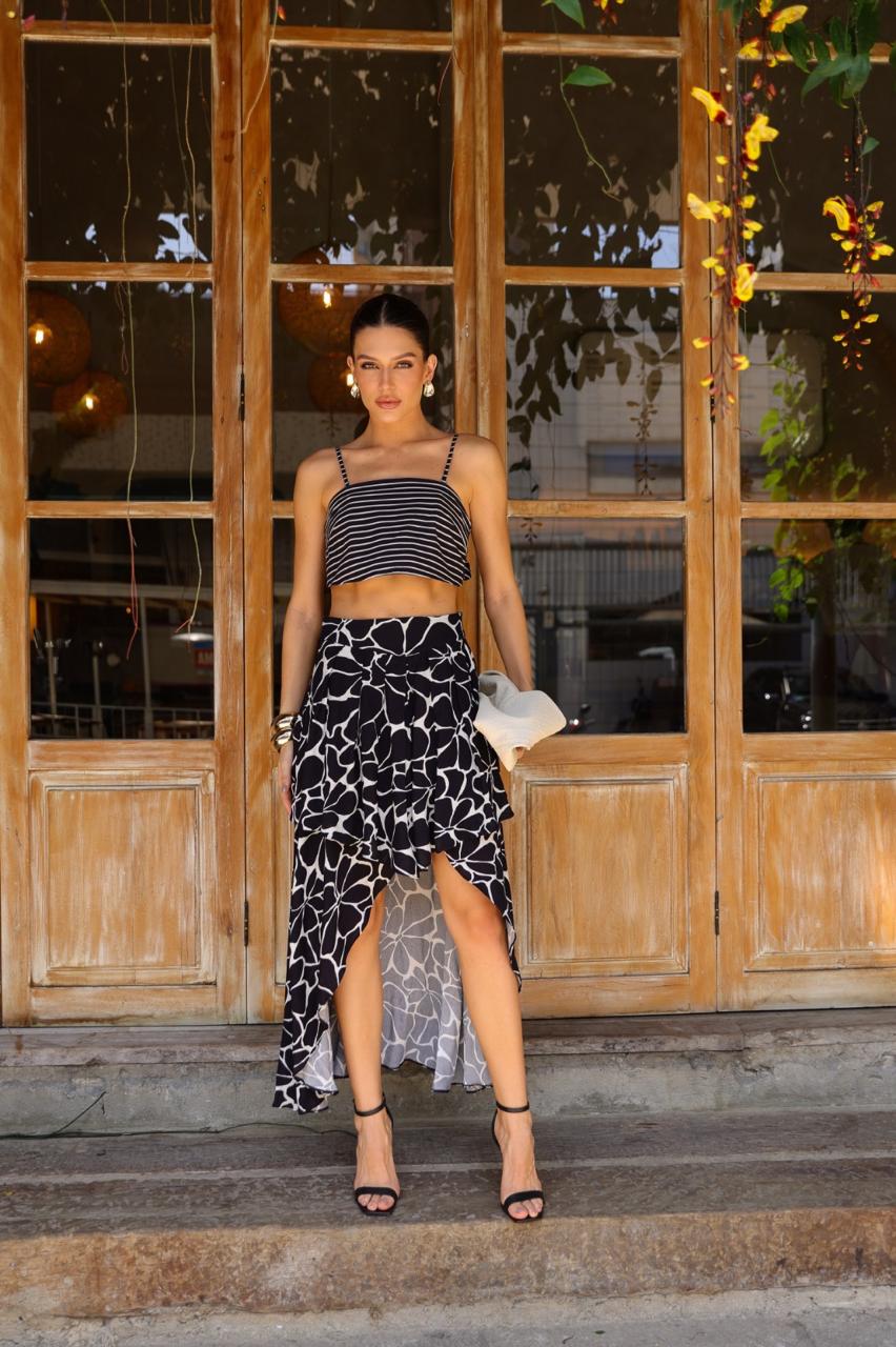 A Saia Flower Black em Algodão é a peça ideal para quem busca um visual moderno, leve e cheio de estilo. Confeccionada em tecido de algodão de alta qualidade, ela garante conforto e respirabilidade, sendo perfeita para os dias mais quentes da estação.